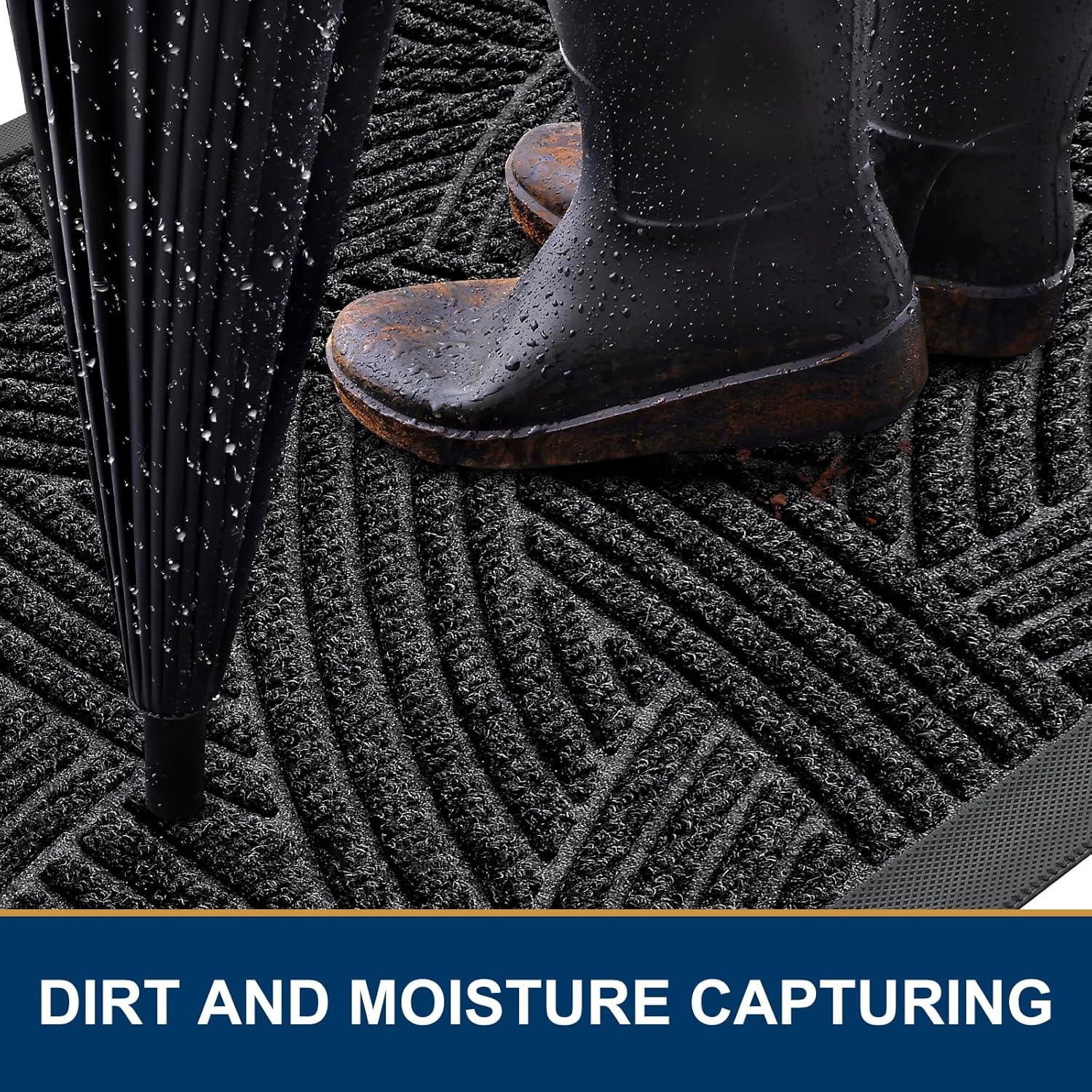 【Moisture & Dirt Absorbent】: The surface of the Smiry door mat is made of woven polyester fabric. The deep grooves can effectively trap the dust, gravel, mud, sand and other clutter. The sturdy beveled rubber edge will not accumulate water. Even rainy, snowy or muddy weather will keep your home dry and clean.