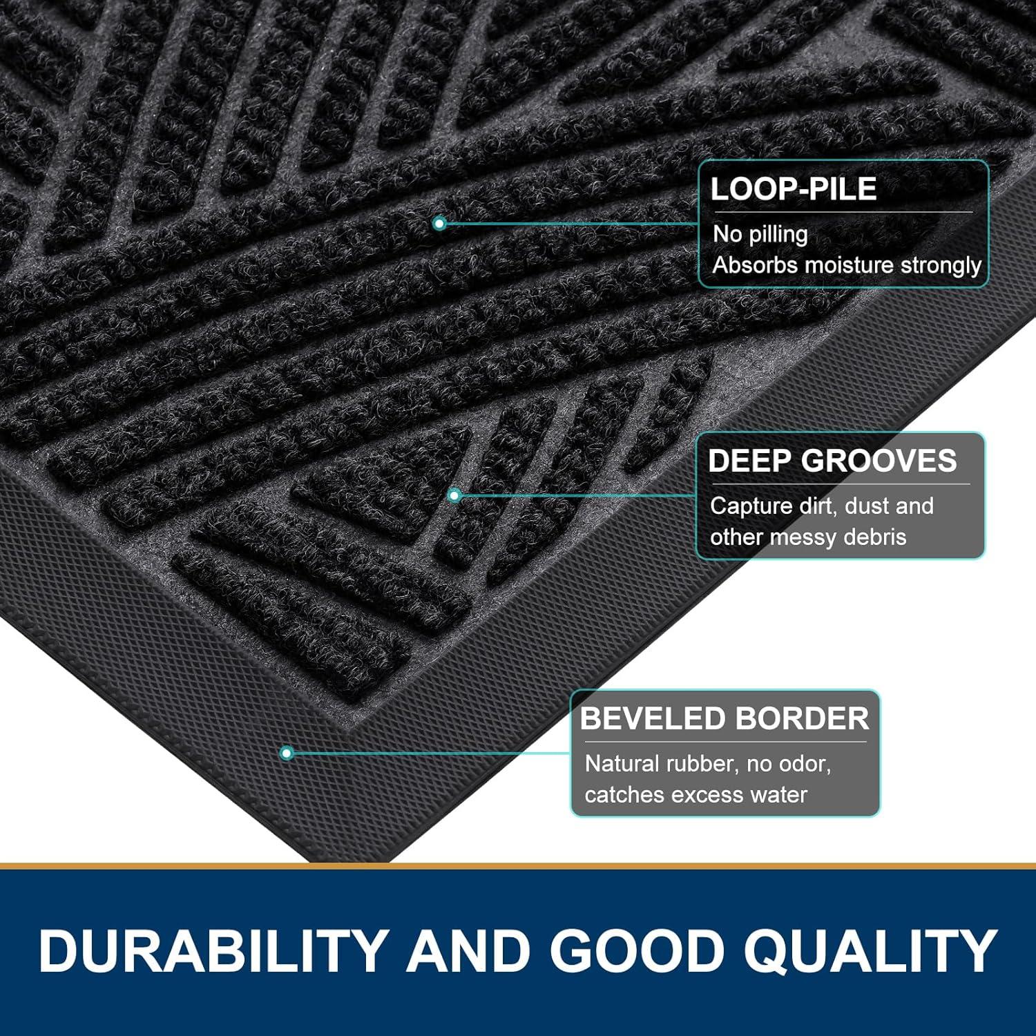 【Sturdy & Non-Faded】: Good quality natural rubber makes the door mat long-lasting. Excellent tensile strength and tear resistance withstand all weather and seasonal changes. Odorless and Non-Faded makes the process of reuse more pleasant.