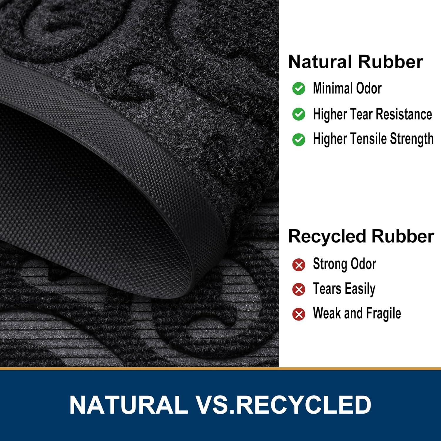 【Sturdy & Non-Faded】: Good quality natural rubber makes the door mat long-lasting. Excellent tensile strength and tear resistance withstand all weather and seasonal changes. Odorless and Non-Faded makes the process of reuse more pleasant.