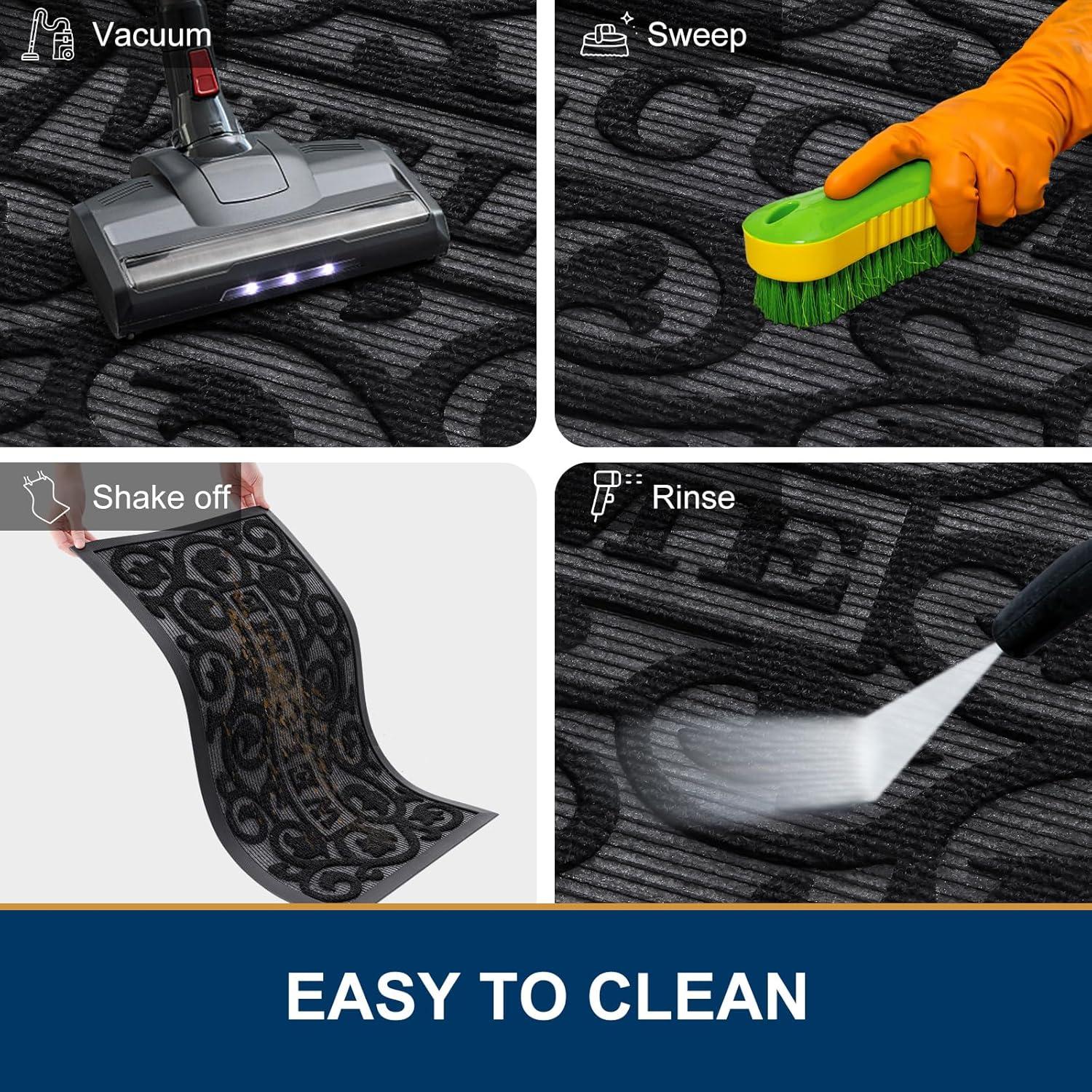 【Easy to Clean】: Smiry front door mat can be swept with a broom, lifted by hand, or vacuumed. For a deeper cleaning, use a washing machine or hose to rinse, then hang it in a ventilated place to air-dry or tumble-dry. Do not use bleach or fabric softeners.