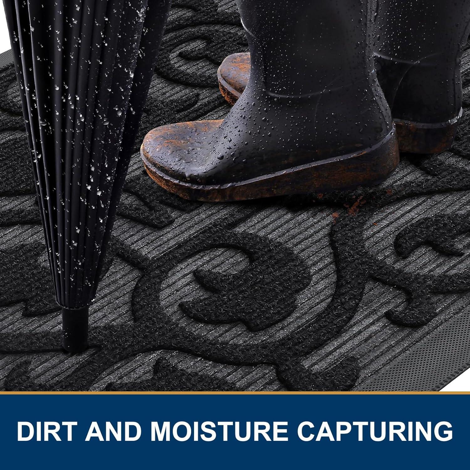 【Moisture & Dirt Absorbent】: The surface of the Smiry door mat is made of woven polyester fabric. The deep grooves can effectively trap the dust, gravel, mud, sand and other clutter. The sturdy beveled rubber edge will not accumulate water. Even rainy, snowy or muddy weather will keep your home dry and clean.