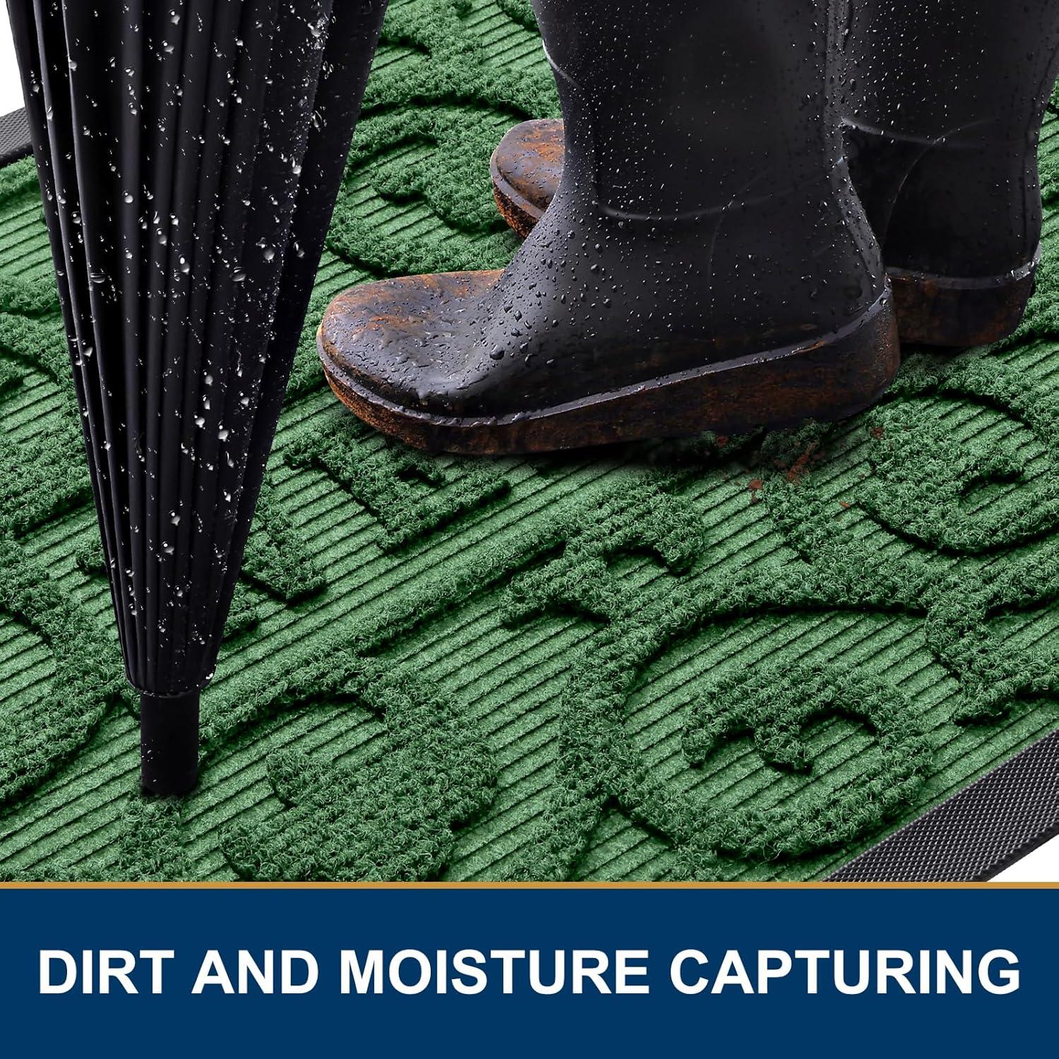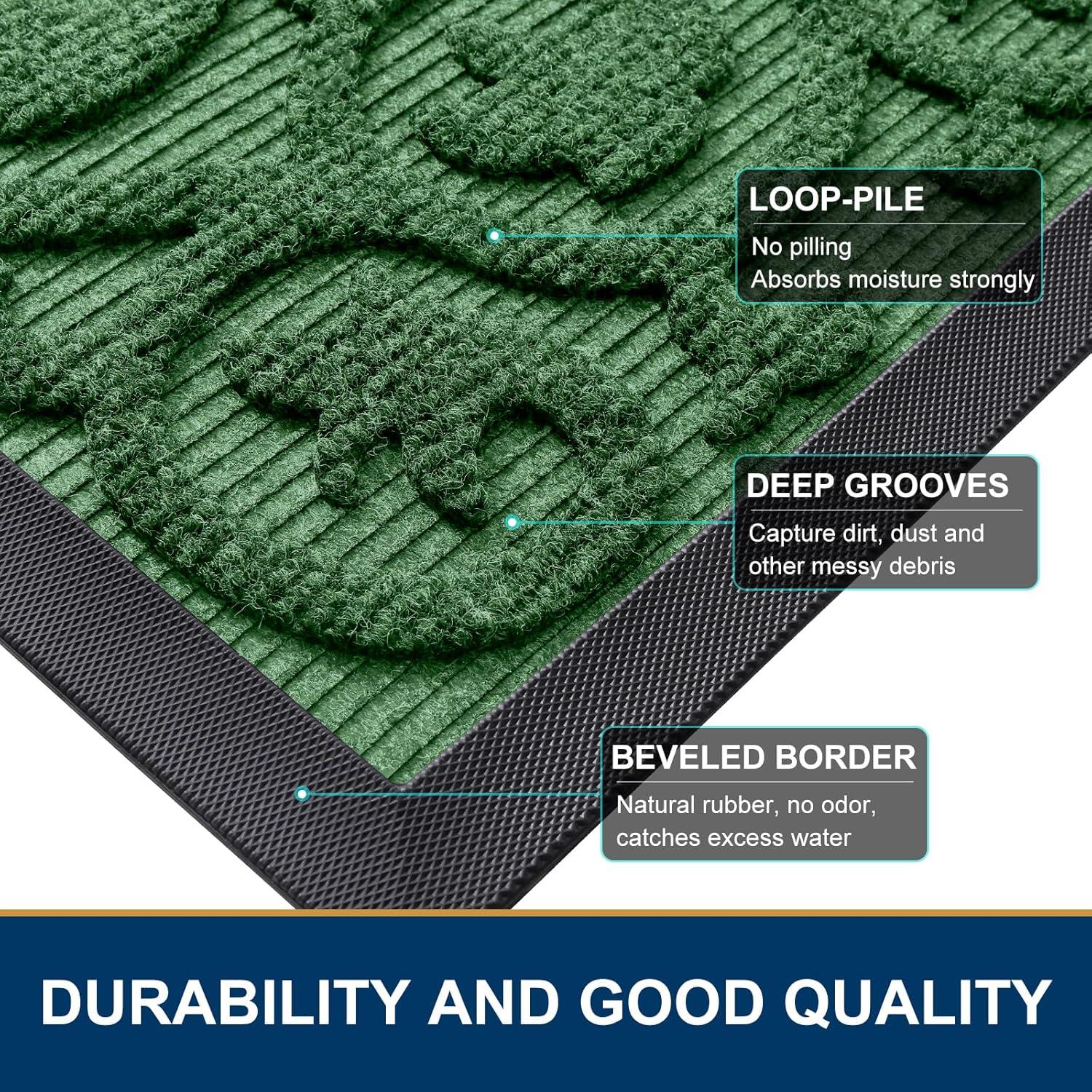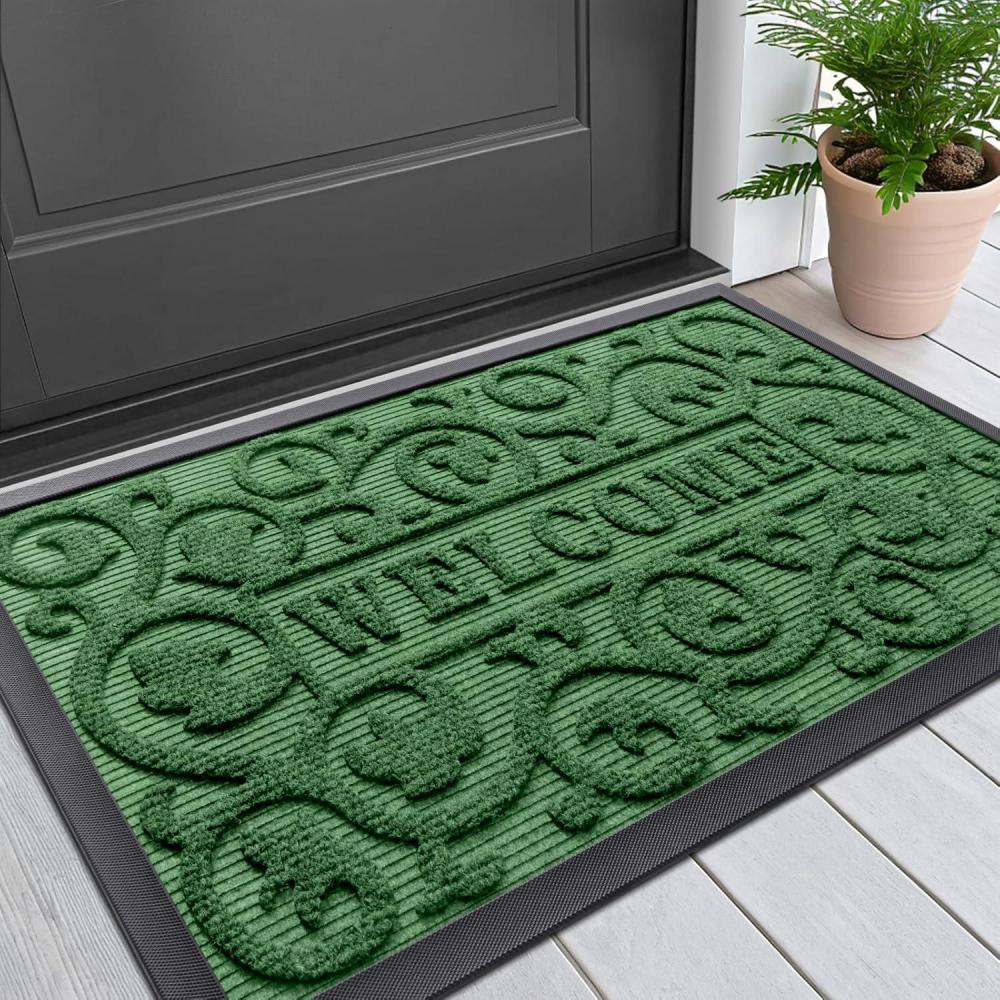 Smiry Welcome Door Mat Outside Entrance, Heavy Duty Trap Dirt and Moisture Easy Clean Low Profile Patio Porch Indoor Outdoor Front Doormat for Entry, 29.5x17 Inch, Black/Welcome(Green/Welcome)