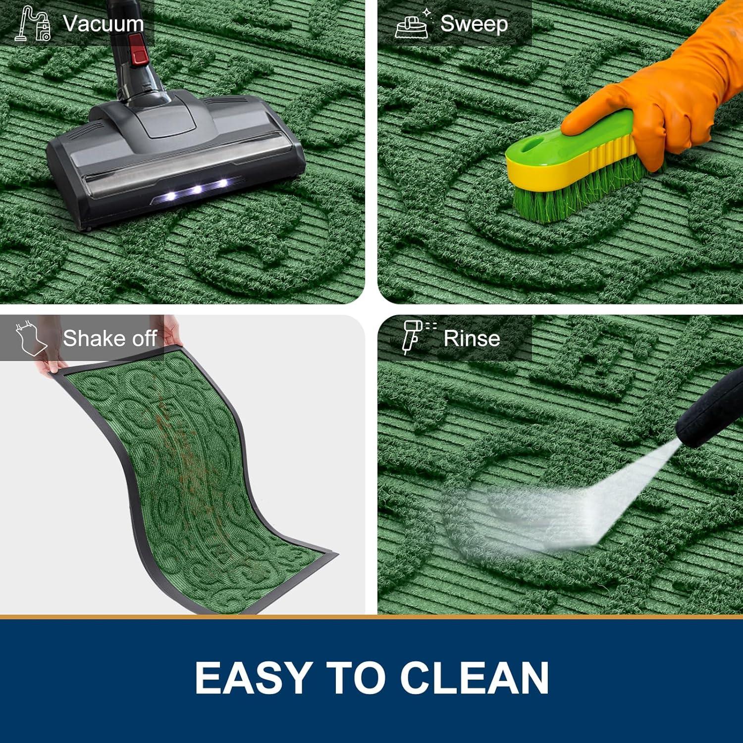 【Easy to Clean】: Smiry front door mat can be swept with a broom, lifted by hand, or vacuumed. For a deeper cleaning, use a washing machine or hose to rinse, then hang it in a ventilated place to air-dry or tumble-dry. Do not use bleach or fabric softeners.