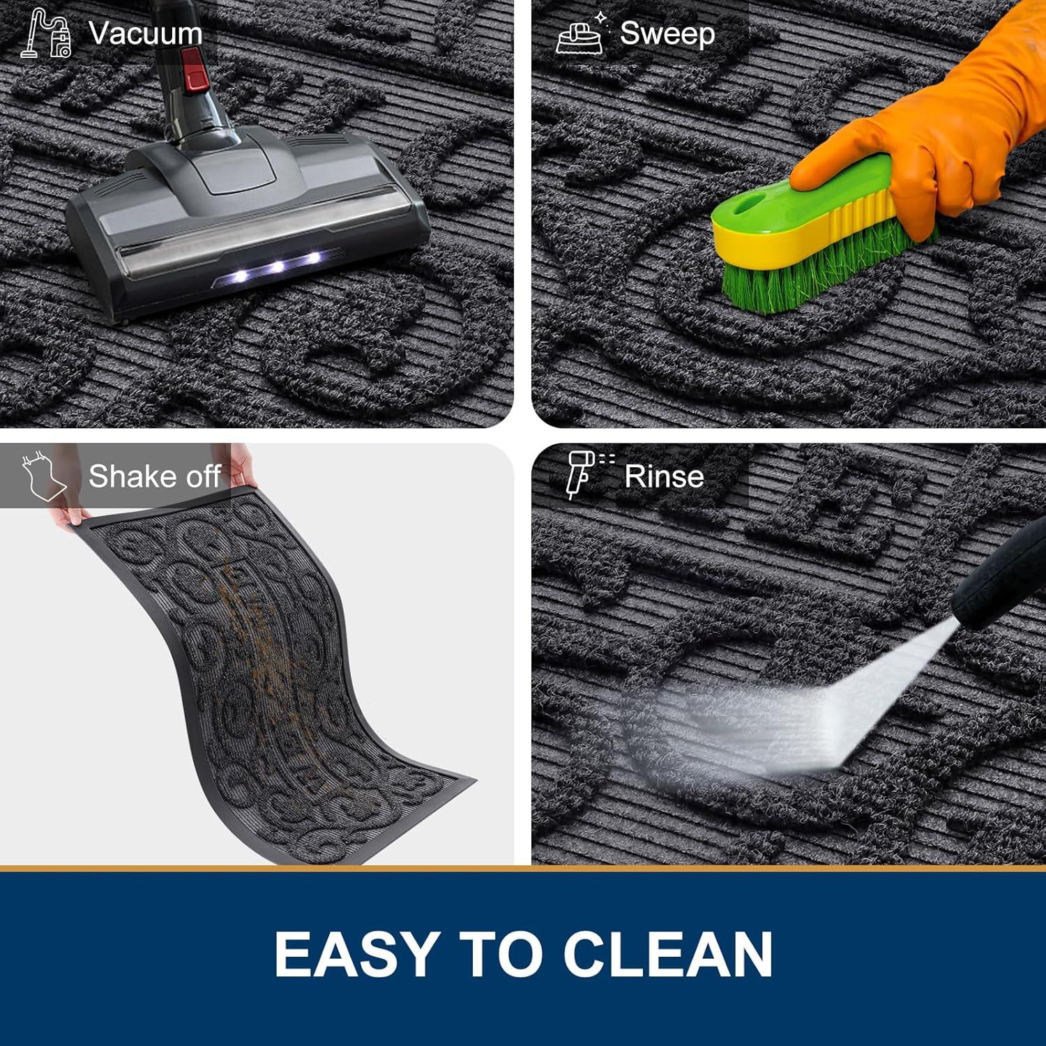 【Easy to Clean】: Smiry front door mat can be swept with a broom, lifted by hand, or vacuumed. For a deeper cleaning, use a washing machine or hose to rinse, then hang it in a ventilated place to air-dry or tumble-dry. Do not use bleach or fabric softeners.