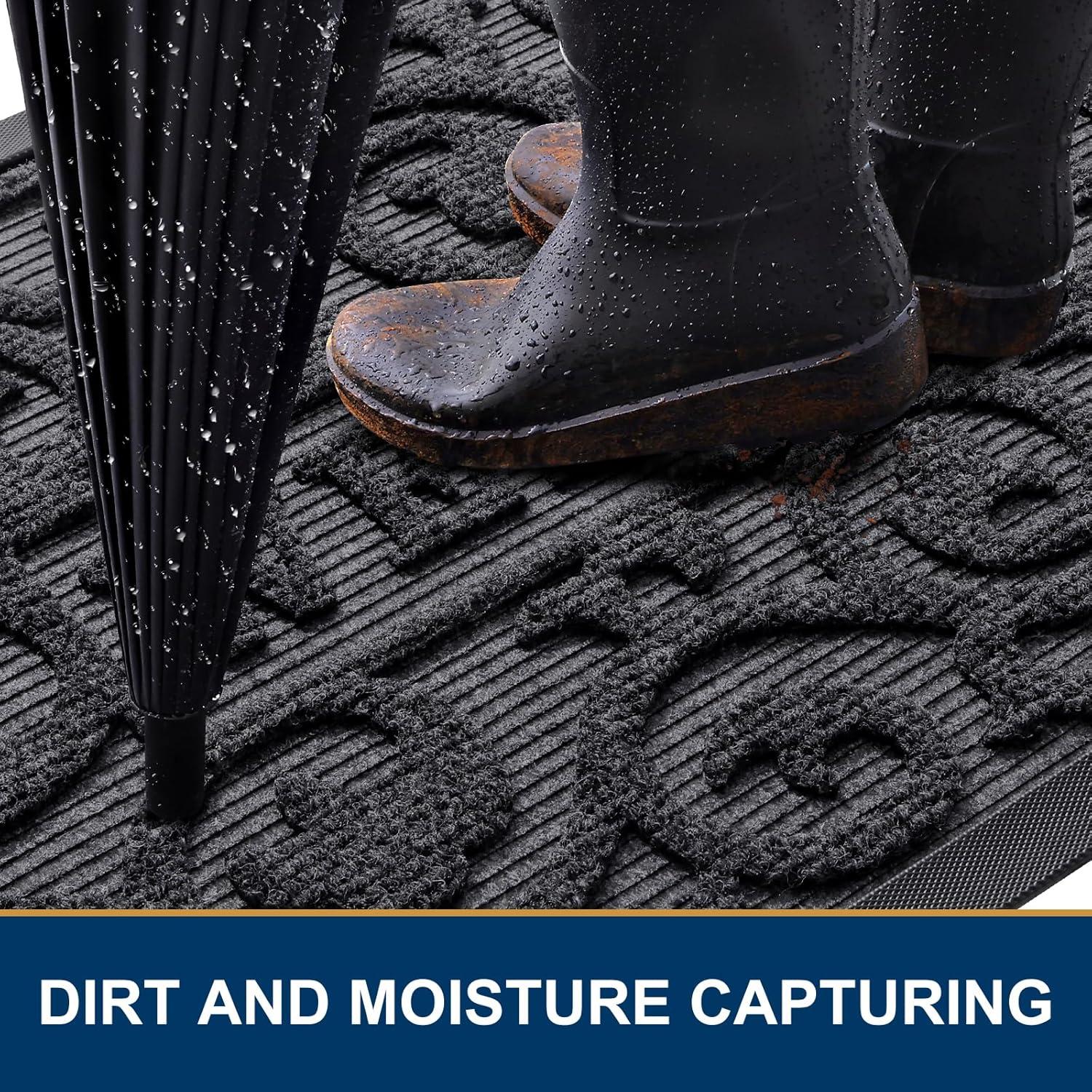 Smiry Welcome Door Mat Outside Entrance, Heavy Duty Trap Dirt and Moisture Easy Clean Low Profile Patio Porch Indoor Outdoor Front Doormat for Entry, 29.5×17 Inch, Black/Welcome(Grey/Welcome)