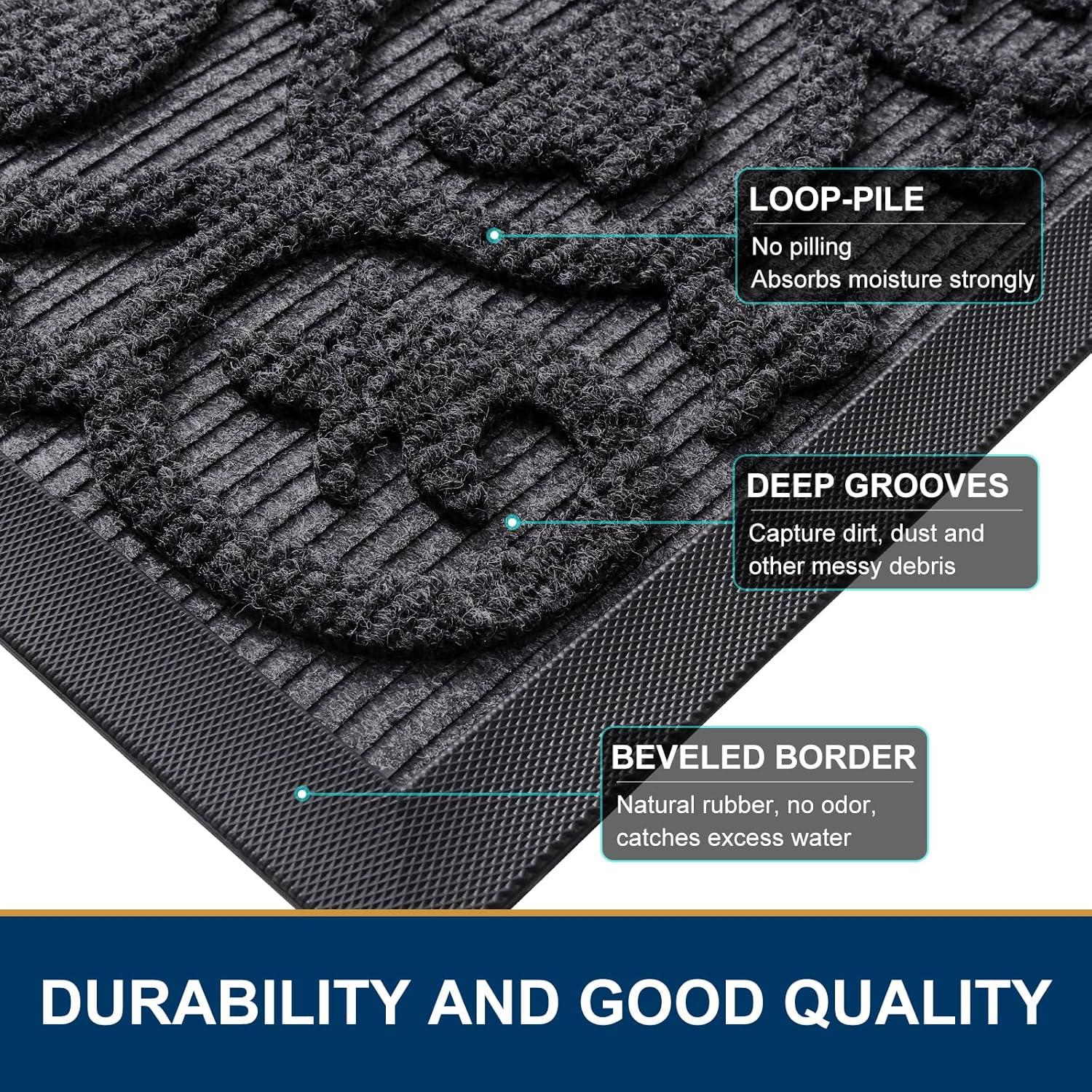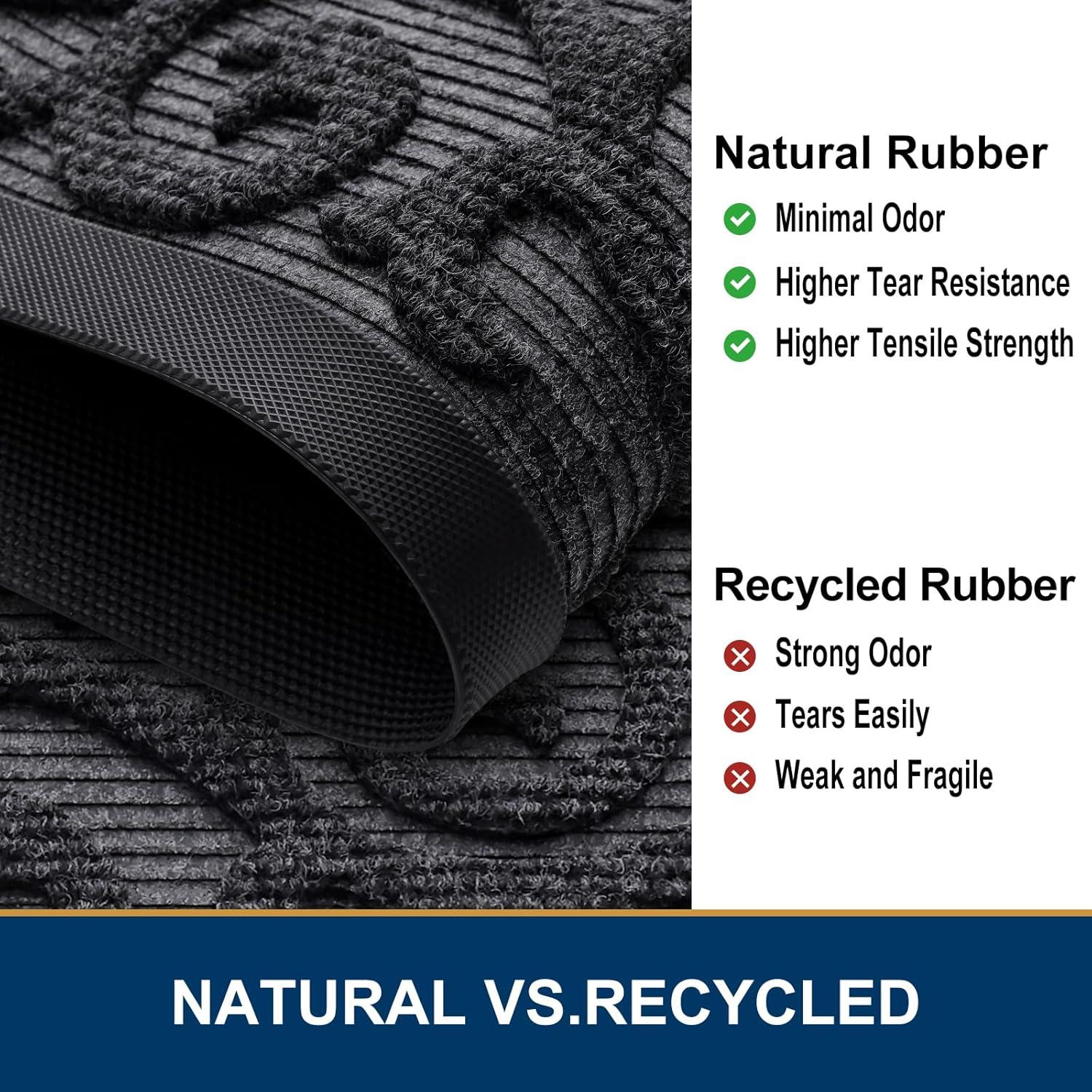 【Sturdy & Non-Faded】: Good quality natural rubber makes the door mat long-lasting. Excellent tensile strength and tear resistance withstand all weather and seasonal changes. Odorless and Non-Faded makes the process of reuse more pleasant.