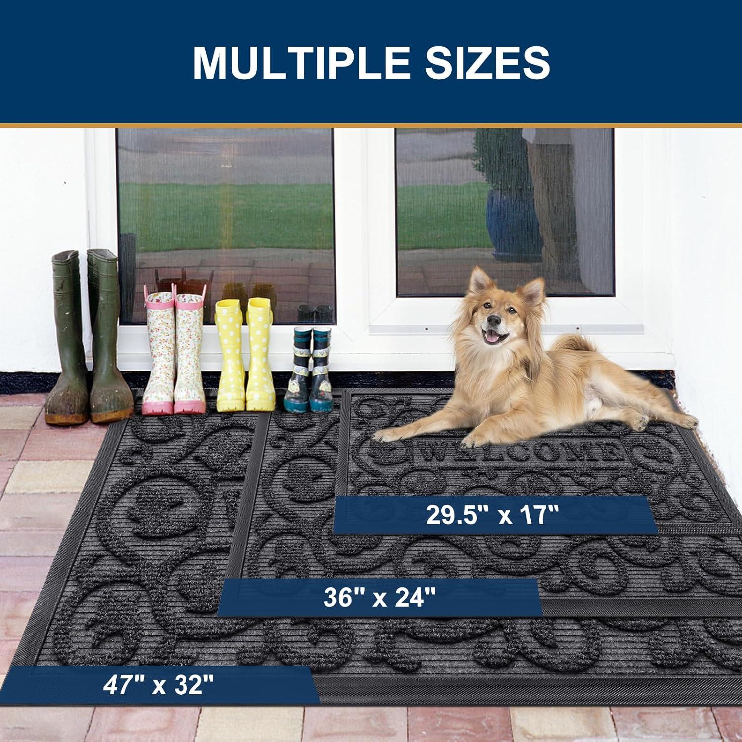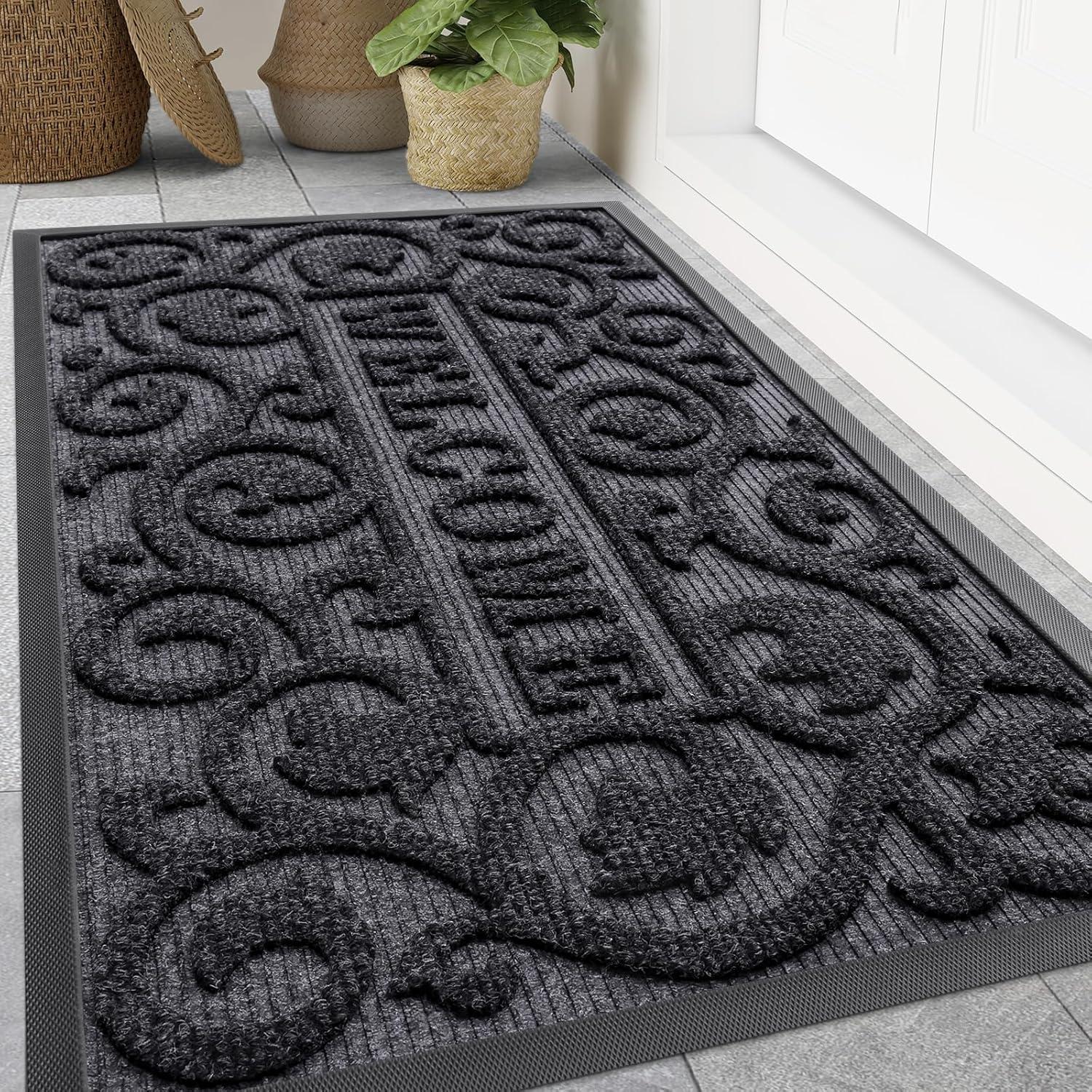 Smiry Welcome Door Mat Outside Entrance, Heavy Duty Trap Dirt and Moisture Easy Clean Low Profile Patio Porch Indoor Outdoor Front Doormat for Entry, 29.5x17 Inch, Black/Welcome(Grey/Welcome)