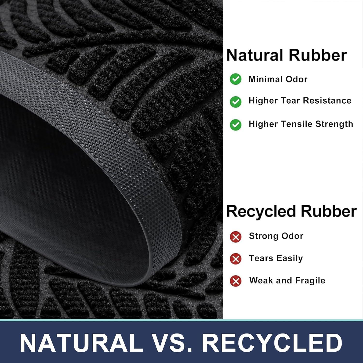 Smiry Welcome Mat Indoor Outdoor, All-Season Waterproof Front Door Mat, Sturdy Natural Rubber Doormat, Non-Slip, Easy Clean, Low Profile Dirt Trapper for Porch Patio Entrance, 29.5x17, Green(Black)