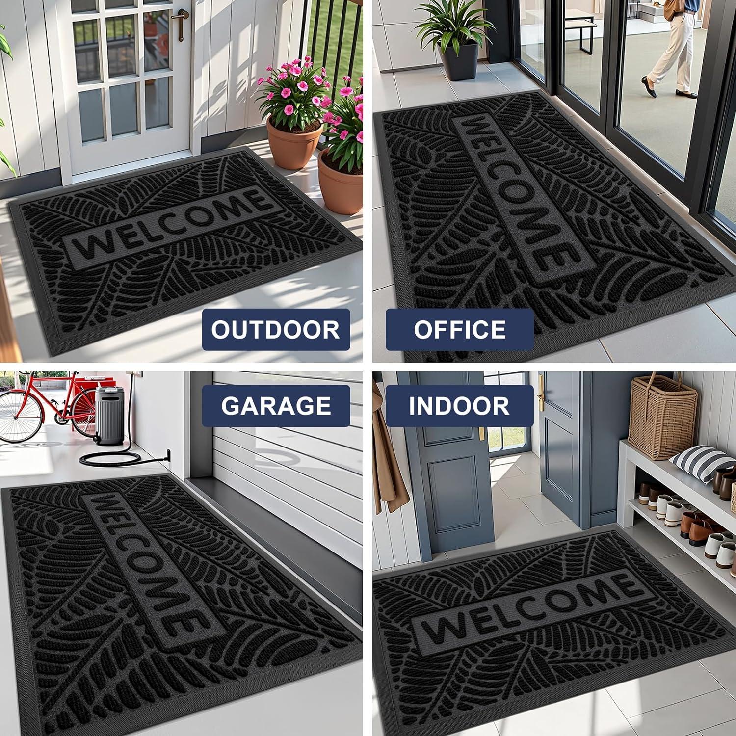 Moisture & Dirt‑Trapping: The Smiry front door mat features a woven polyester surface with deep-groove patterns and a bold “WELCOME” message, creating an inviting entryway while providing powerful performance. Its textured surface efficiently traps moisture, mud, dirt, dust, sand, grass, and debris from shoes and pets—helping to keep indoor floors clean, dry, and protected year-round. Perfect as a mud trapper mat for busy households