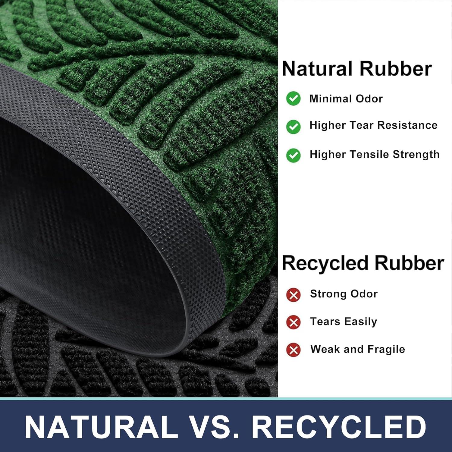 Smiry Welcome Mat Indoor Outdoor, All-Season Waterproof Front Door Mat, Sturdy Natural Rubber Doormat, Non-Slip, Easy Clean, Low Profile Dirt Trapper for Porch Patio Entrance, 29.5×17, Green(Green)
